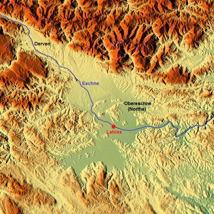Die Provinz Obereschne und deren Hauptstadt LahresWir befinden uns in Lahres, Hauptstadt der Provinz Obereschne und Teil des Kurfürstentums Northa. Lahres liegt im Grenzgebiet zu Derven, einem benachbarten Kurfürstentum, mit dem Northa eine viele Zyklen währende Feindschaft verbindet. Auch wenn der letzte Krieg zwischen beiden Ländern bereits einige Jahre zurückliegt, so finden aufgrund des nie verbindlich festgelegten Grenzverlaufs immer noch in einer gewissen Regelmäßigkeit kleinere Grenzscharmützel statt, in denen meist um die Herrschaft über kleinere Bergdörfer und Almen im Grenzgebiet gekämpft wird. Auch aus diesem Grund, ist in Lahres dauerhaft ein Bataillon Infanterie als Garnison stationiert.